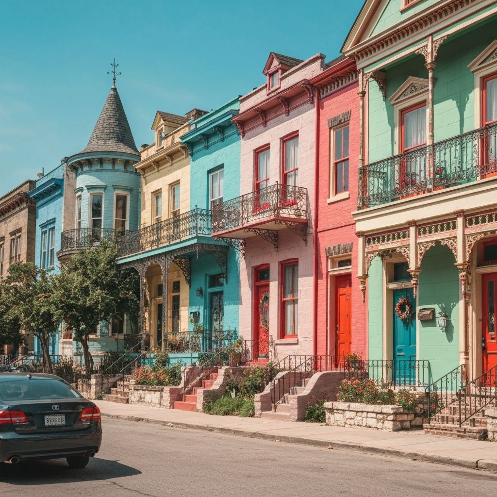 Artistic neighborhood with galleries, cafes, and renovated homes